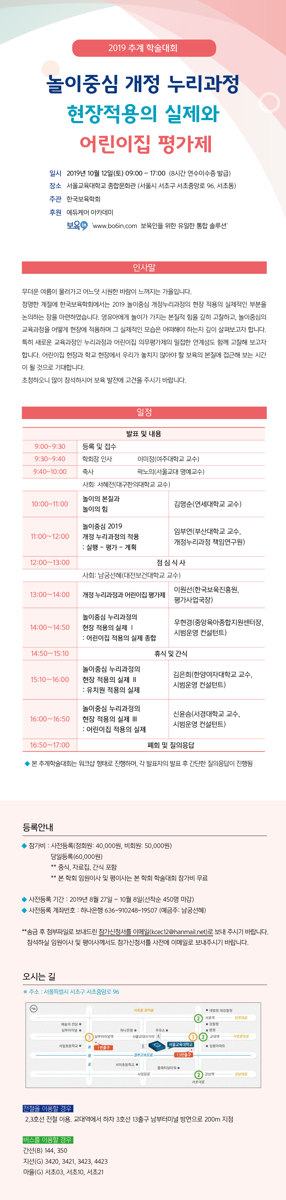 2019 한국보육학회 추계학술대회 등록마감(사전/현장 모두)